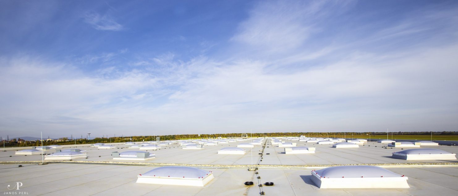 Műszaki tartalom: az épület hő és füst elvezető kupoláit telepítettük, valamint a tűzgátló lezárások kivitelezését végeztük.